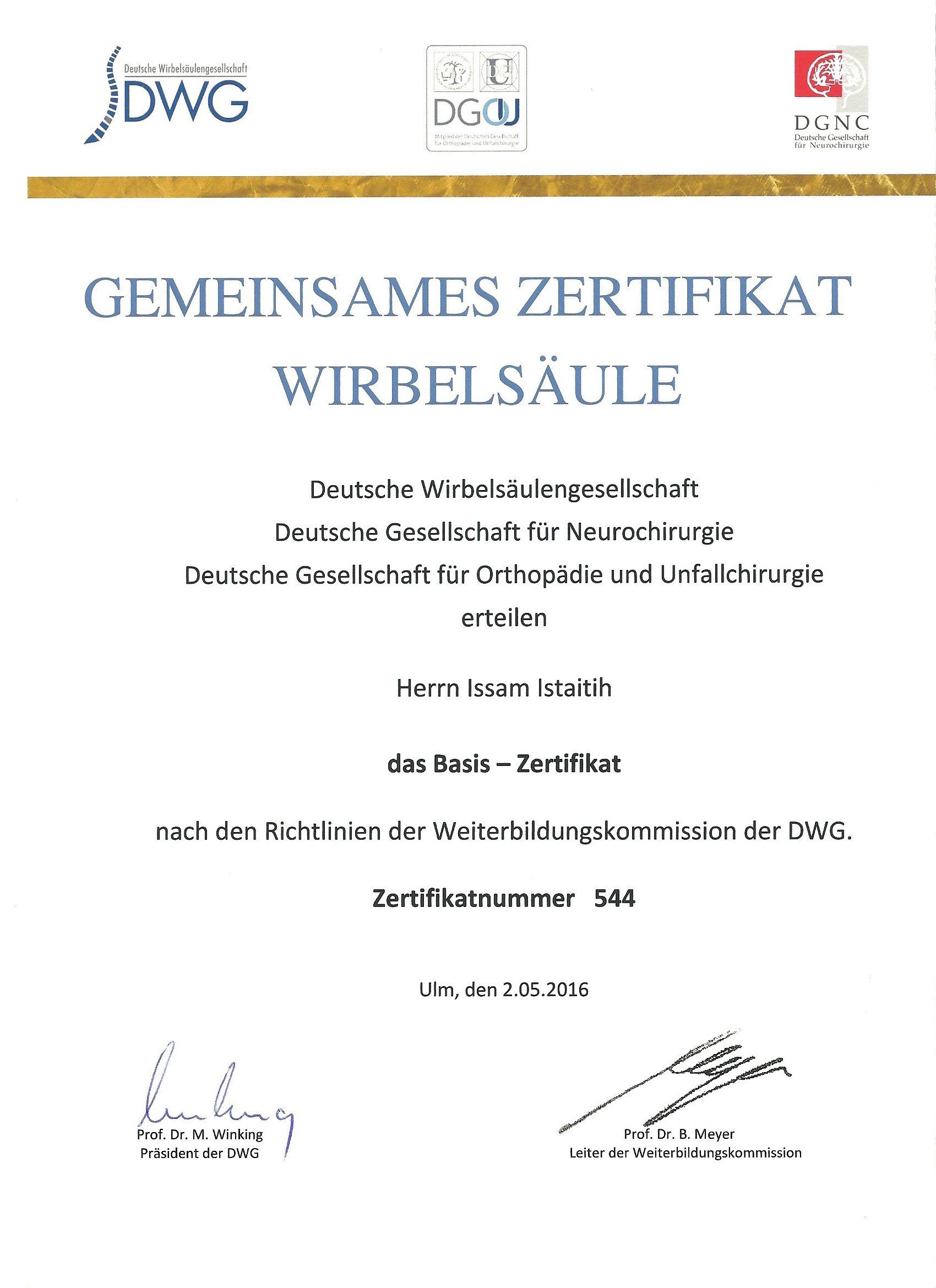 Basis- und Masterzertifikat der Deutschen Wirbelsäulengesellschaft